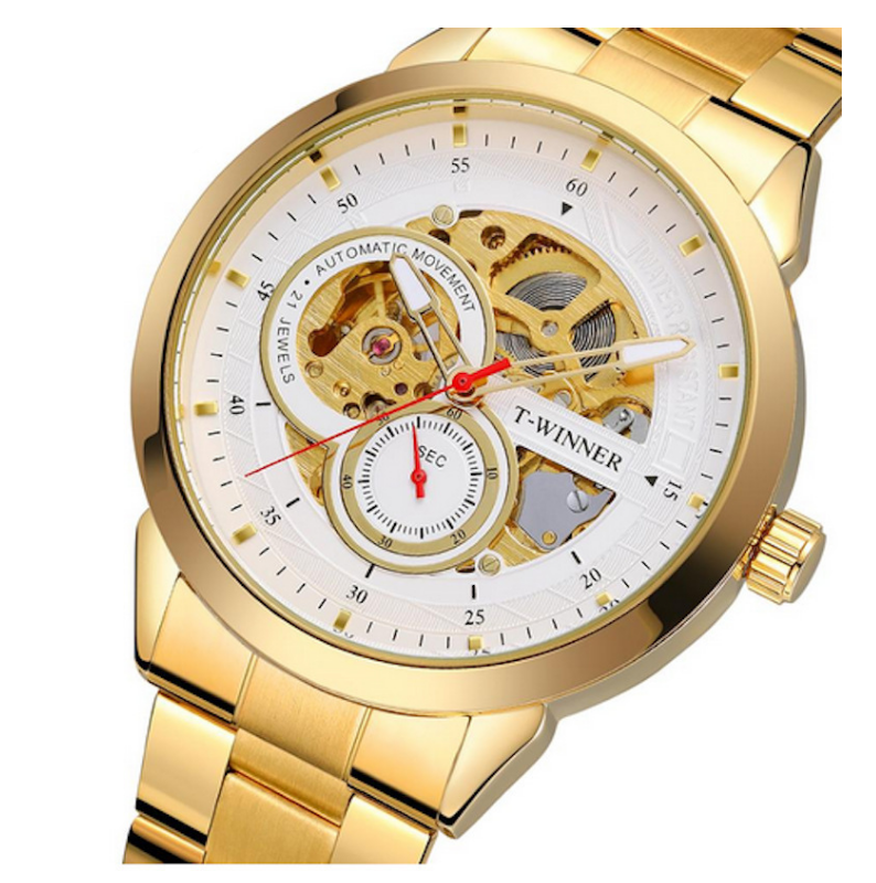 DFG19 Sports Men T Winners Men Large Dial Face Mechanical Pointers Watch with Metal Straps