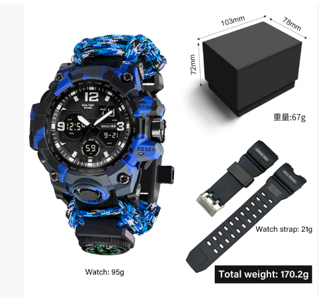 DFS10 Customizable Multifunctional LOGO Outdoor Compass Hiking Survival Tactical Watch With Whistle Fire Starter