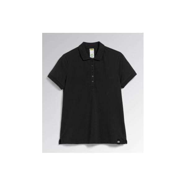 DIADORA UTILITY - 702.177674-80013/M Women’s black short-sleeved polo-shirt in stretch organic cotton pique