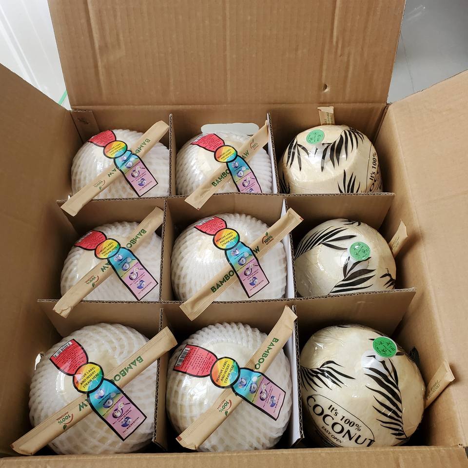 DIAMOND CUT YOUNG COCONUT EASY to OPEN OEM BULK QUANTITY SWEET WATER