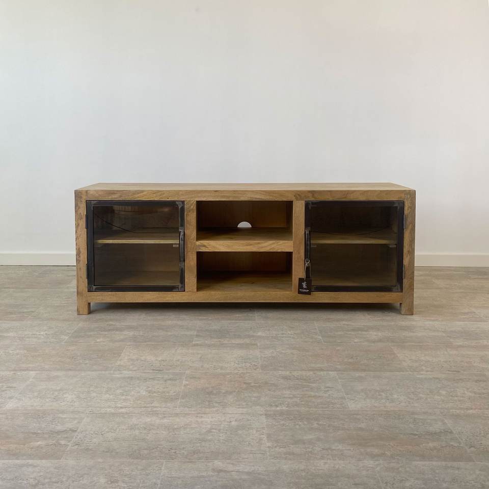 DIMONT Handcrafted Solid Acacia Wood TV Cabinet Ethnic Modern Storage Handmade Entertainment Unit Media Console