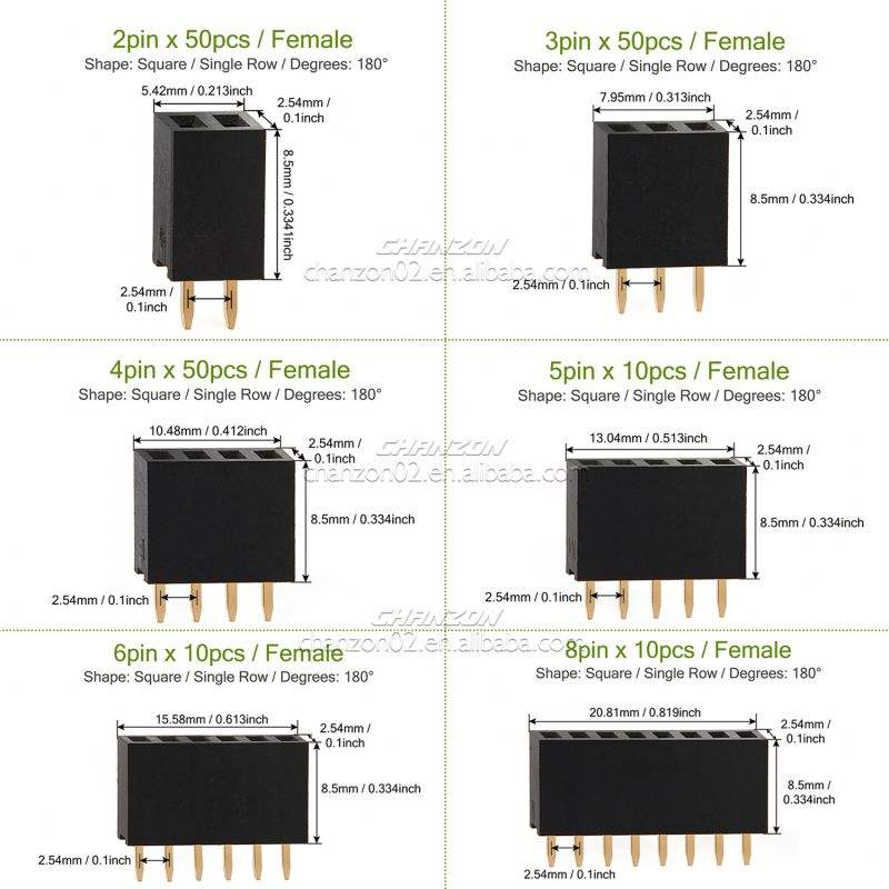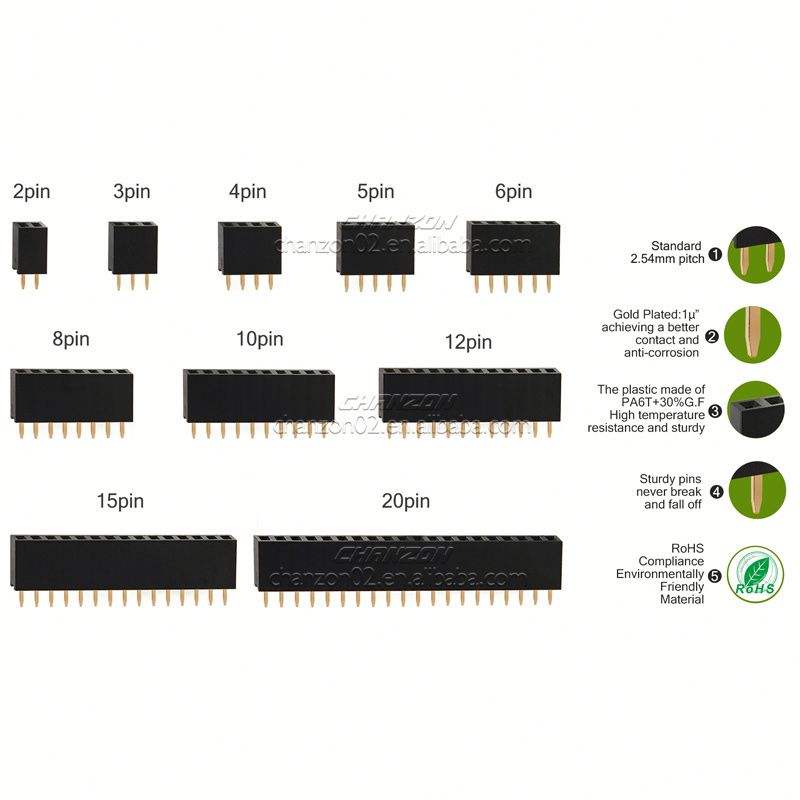 DIP 2.54mm Pitch Single Row Female Pin Header Connector 2pin 3pin 4pin 5pin 6pin 8pin 10pin 12pin 15pin 20pin 40pin Gold Plated