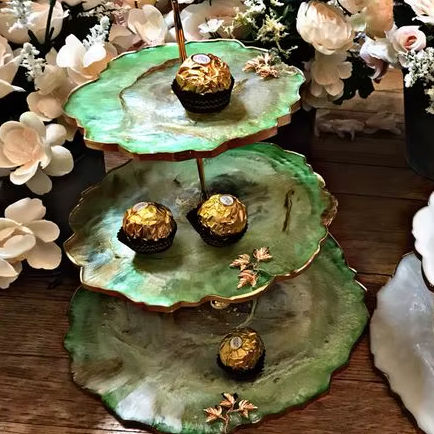 DISPLAY RELATED DISPLAY HANDMADE DIY 3 Tier Round Shape Fruit Tray Epoxy Mold Tea Tray Table Silicone Mold for Resin Arts