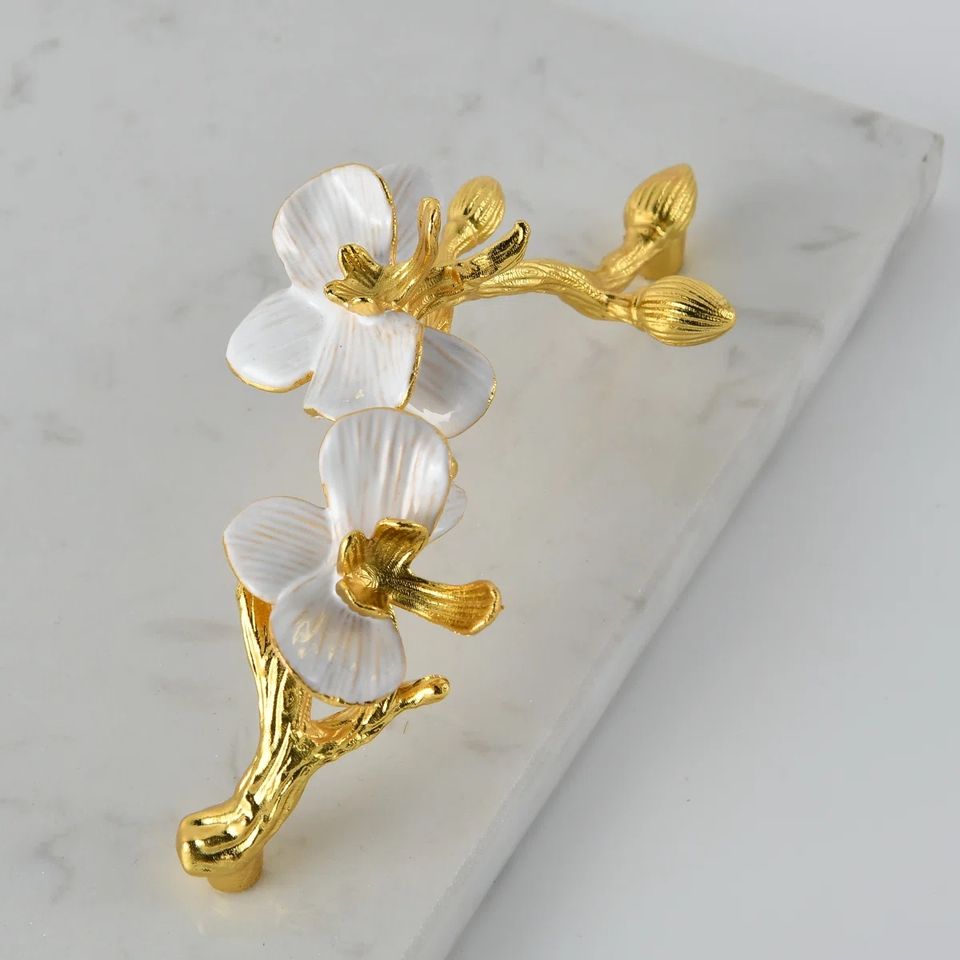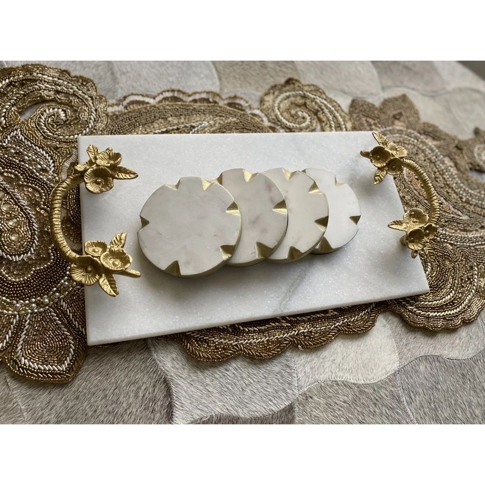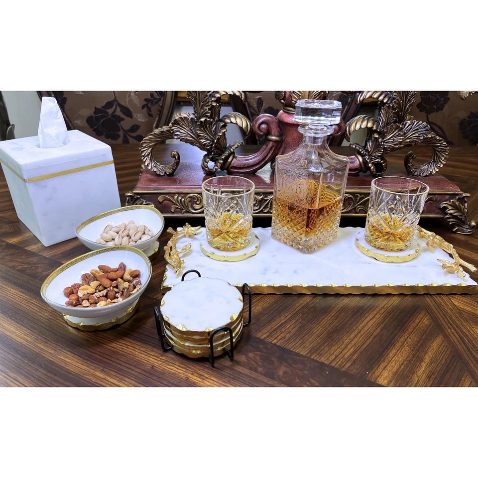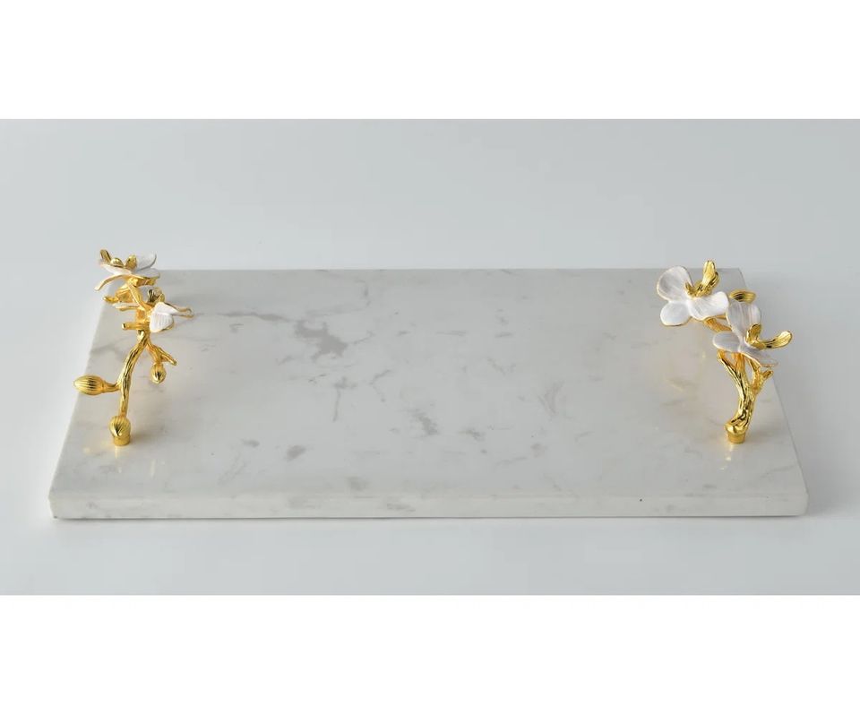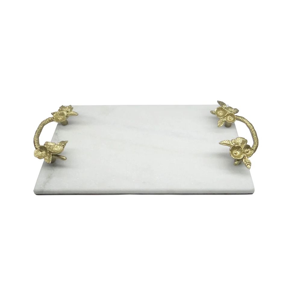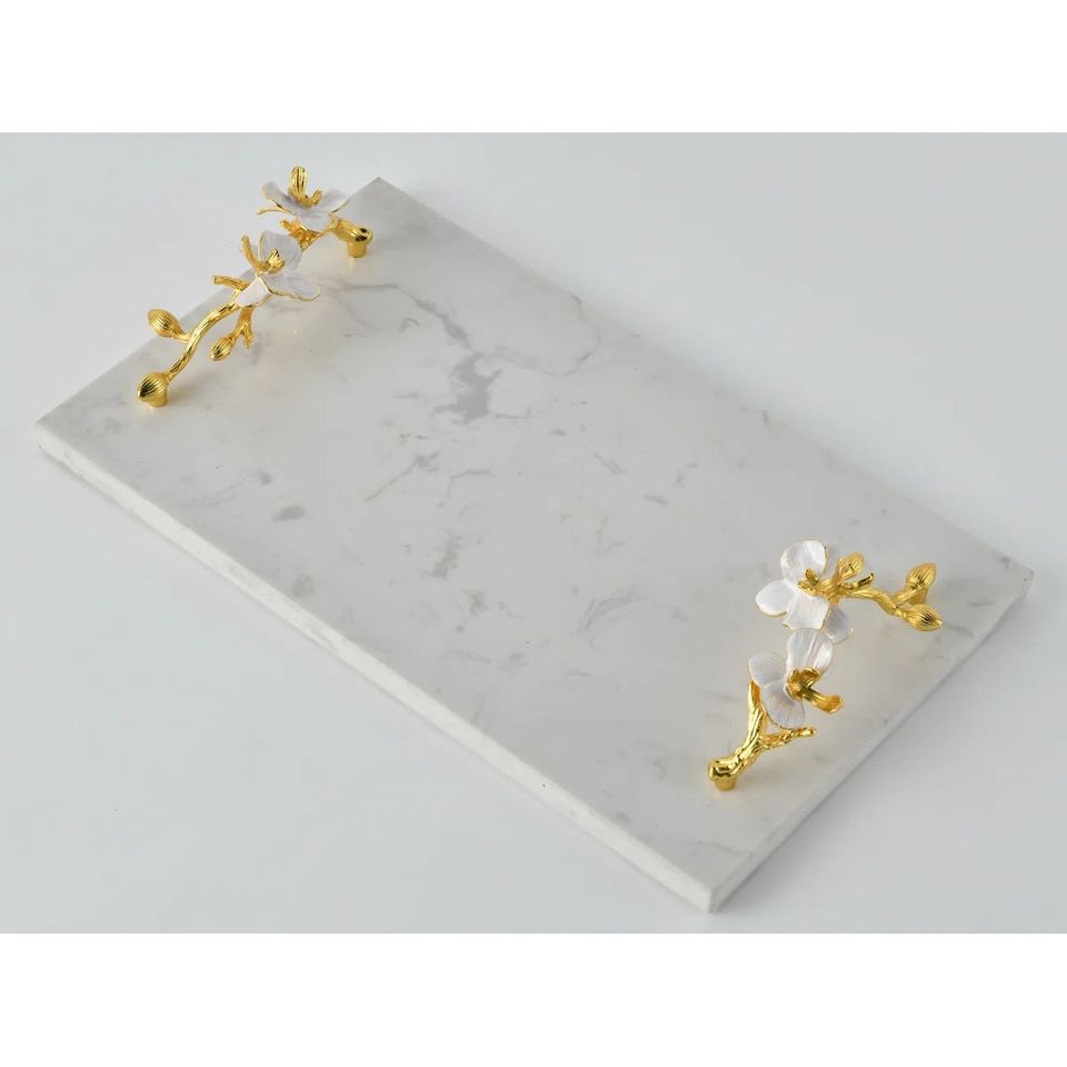 DIVA COLLECTIONS MI-900 Gold Handle Edge Marble Decorative Serving Tray Modern Rectangle Design for Weddings Ramadan Decorations