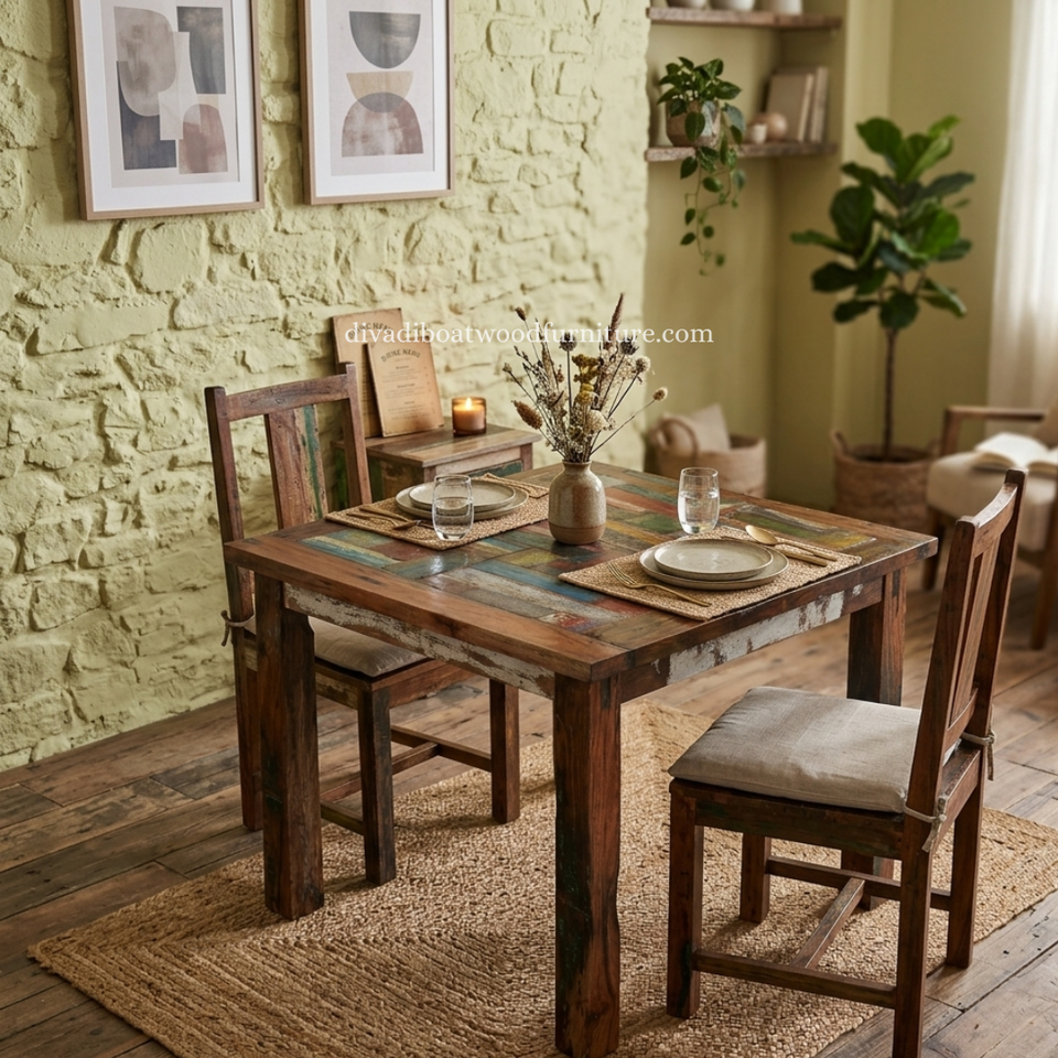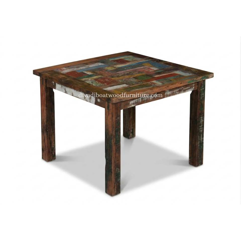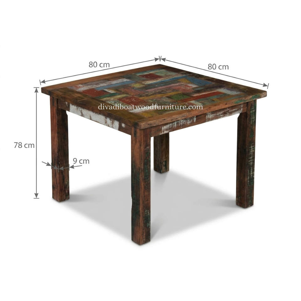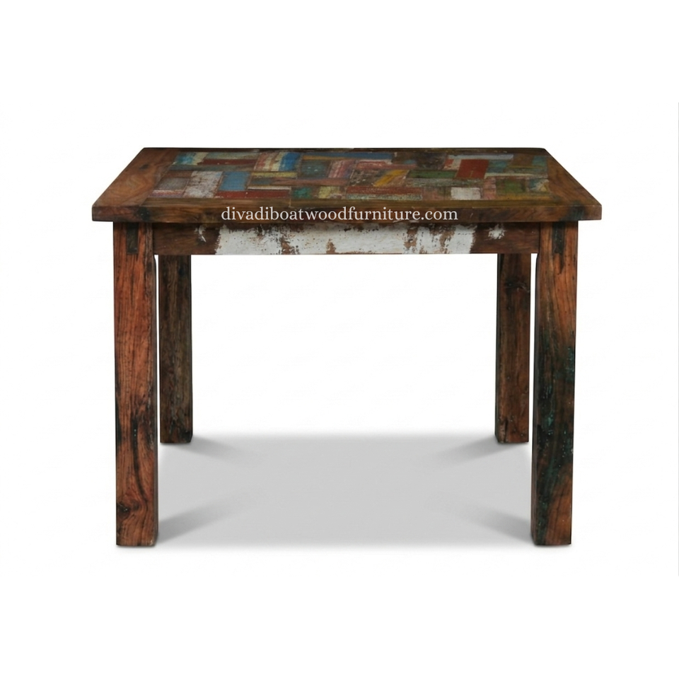 DIVADI Dining Table Java Patchwork KD Leg Square Reclaimed Boat Wood Sustainable Design Eco-Friendly For Indoor and Outdoor