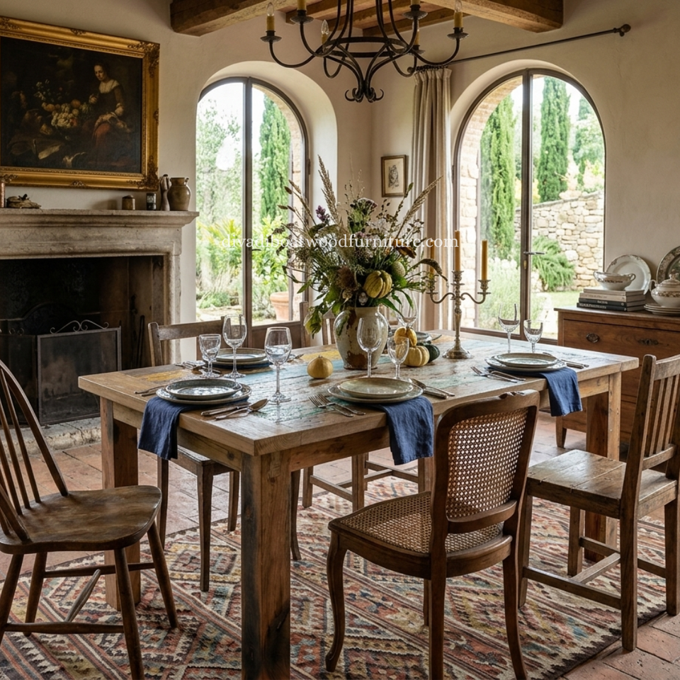 DIVADI Dining Table Java Style KD Leg Rectangular Model Reclaimed Boat Wood Sustainable Design EcoFriendly Foldable Entry Indoor