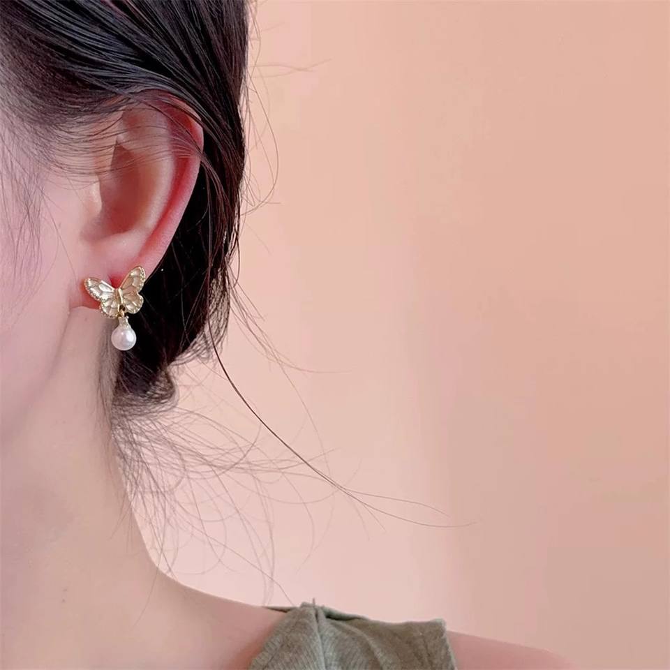 DIY 22547 Silver Jewelry Earrings Empty Tray 7-11mm Beads S925 Silver Earnail Butterfly Accessories Pearls Pearls Collection