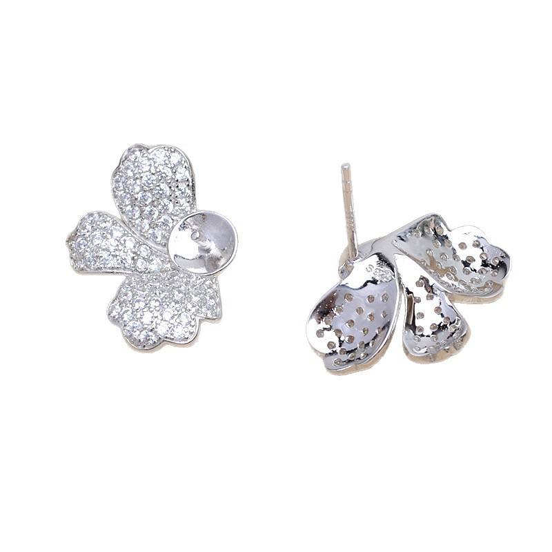 DIY Accessories 925 Silver Base Lotus Pendant Empty Holder 11-12mm Concealer Holder 14-15 Ring JG5898 for Pearl Earrings