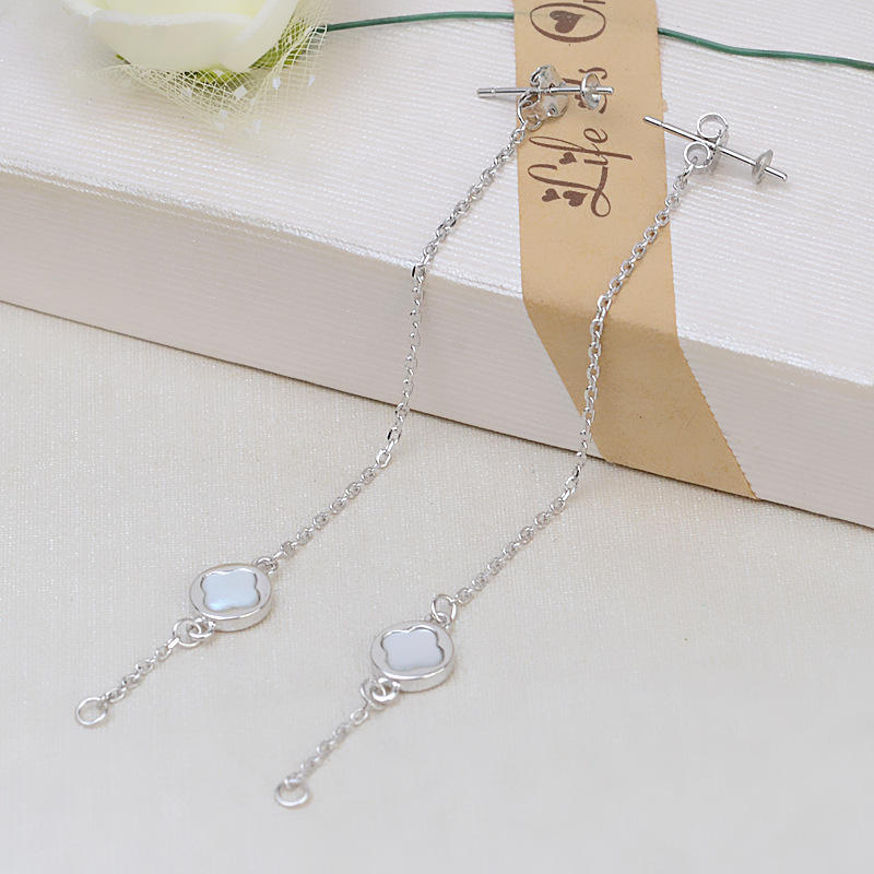DIY Accessories S925 Silver Ear Nails Lucky Grass Shell Earrings Tassel One 2 Wear 6-10 Pearl Empty Stand Fine Dangle Earrings