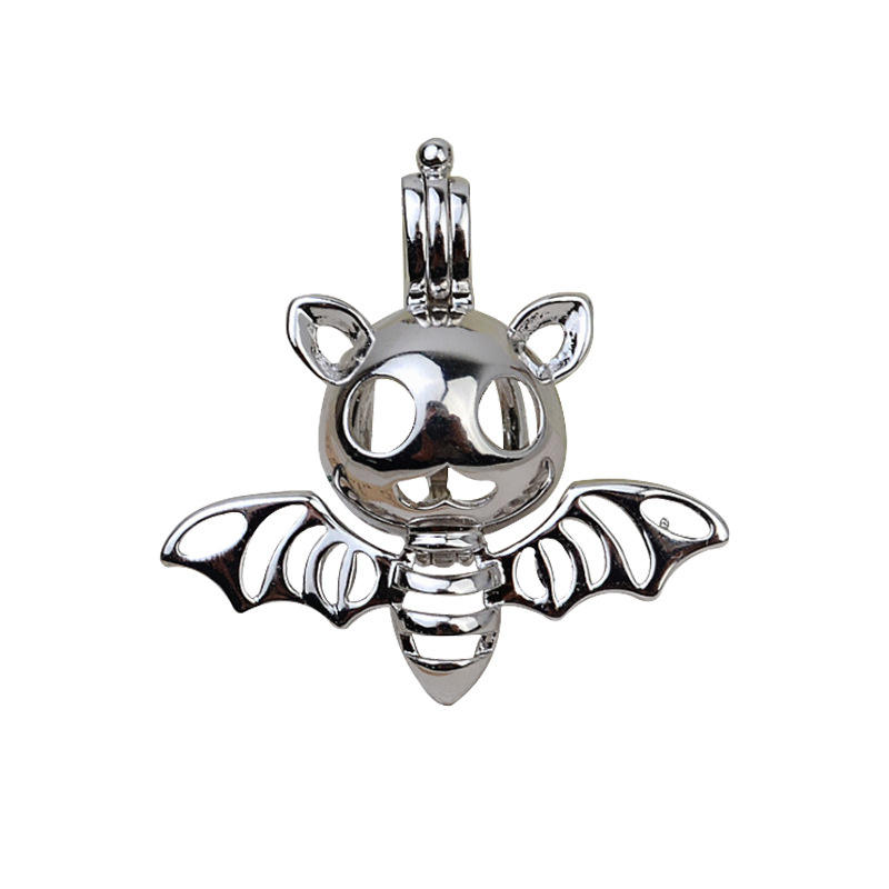 DIY Accessories S925 Silver Halloween Bat Pendant Necklace 6-8 Cage No Hole Pearl Empty Holder for Female Gold Number Cartoon