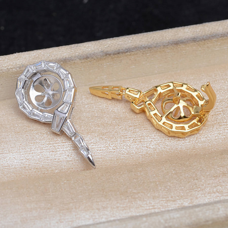 DIY Accessory Loose Pearl Snake Pendant S925 Silver 5812 Empty Setting with 9-10 Buckles Zodiac Year Snake Head Pendant