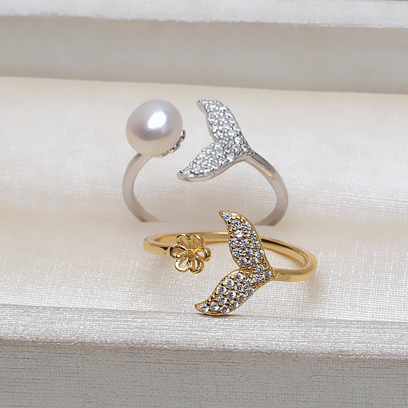 DIY Accessory S925 Silver Open Mermaid Princess Ring with Fish Tail 6-9 Pearl Empty Holder 3153 Semi-Finished Gemstone Product