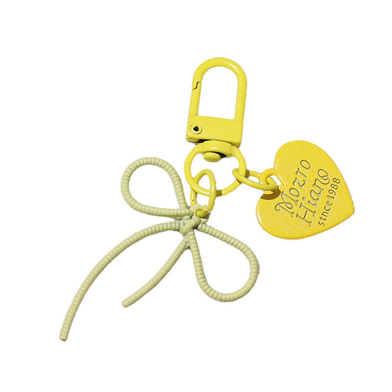 DIY Alloy Hollow Bow Keychain with Colorful Heart Tag Pendant Fashion Trend Cute Girl Style Bag Charm