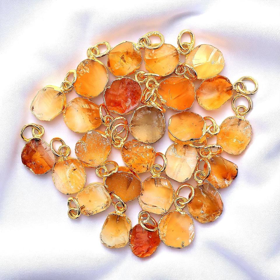 DIY Birthstone Raw Citrine Flat Gemstone Single Loop Gold Electroplated Wholesale Lot Charm Jewelry Making Supply