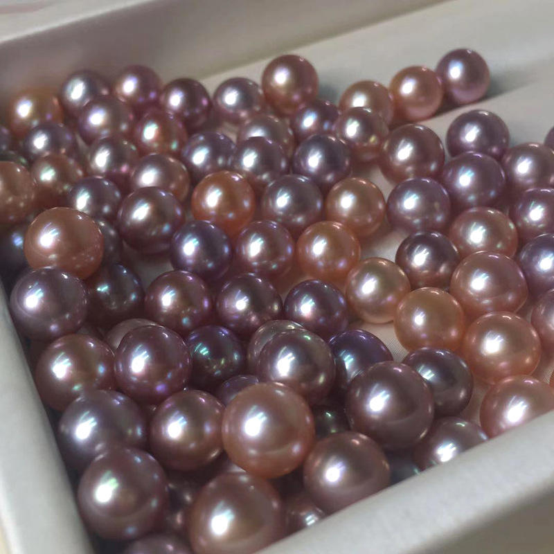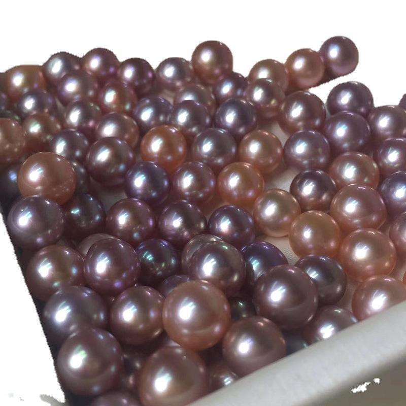 DIY Color Round 6-8mm Micro Flaw Strong Light Particle Freshwater AK Pearl Half Hole Bare Bead Loose Pearls