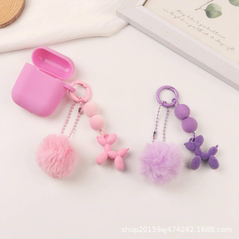 DIY Cute Puppy Car Keychain Pendant Creative Colorful Flocked Round Bead Pom Accessories Earphone Case Decorations