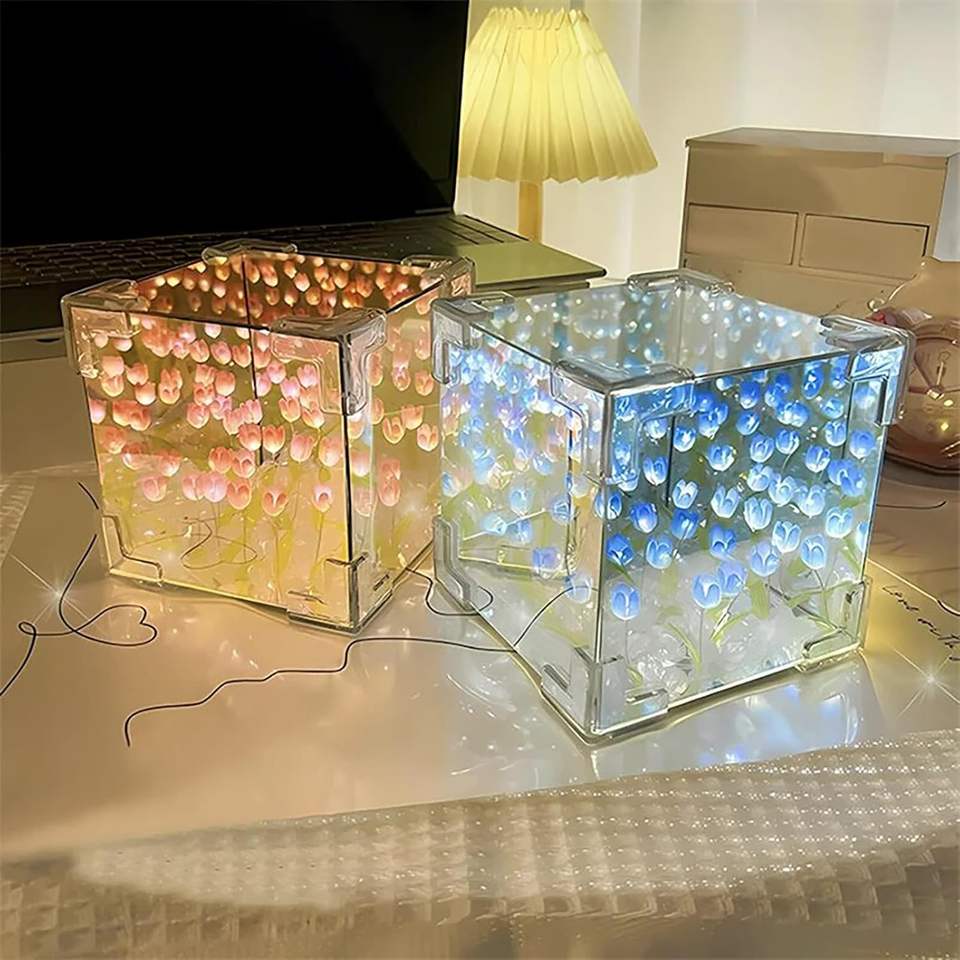 DIY Decorative Mirrors Handmade Garden Tulips Night Light Led Mirror Table Lamps Bedroom Ornaments Craft Tulip Mirror Gift