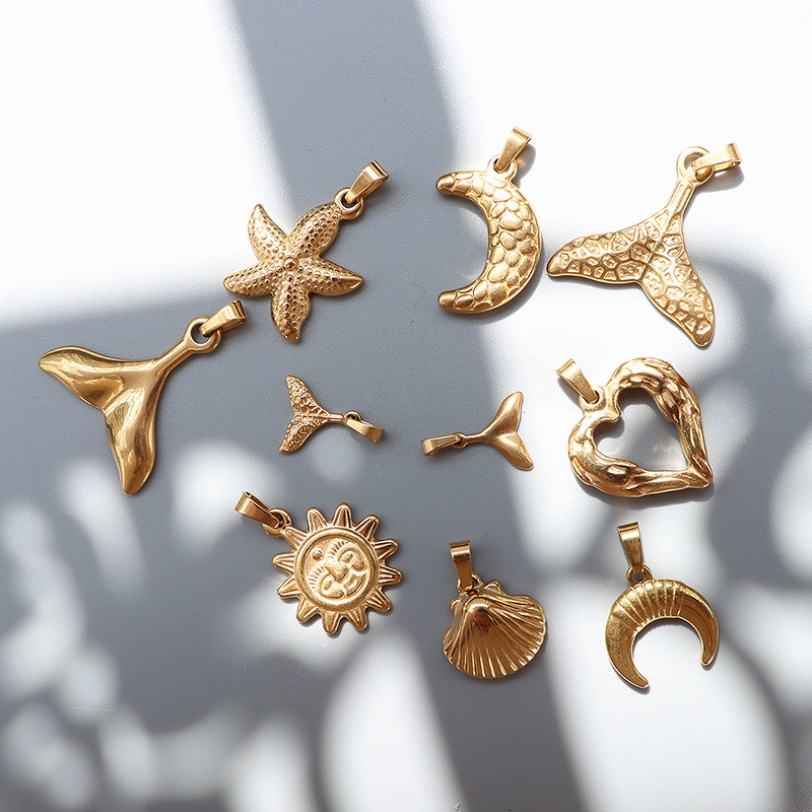DIY Fashion Jewelry Pendant & Charms Stainless Steel Gold Plated Shell Fishtail Ocean Pendants for Jewelry Making