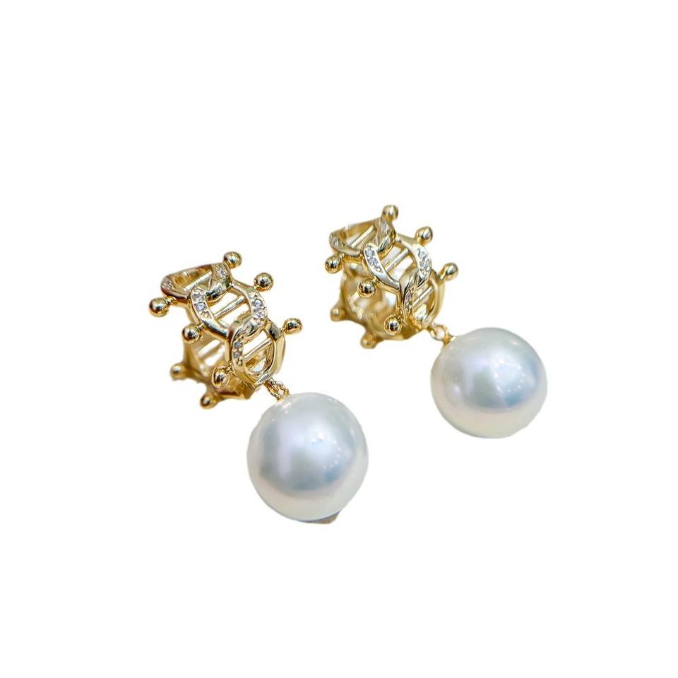 DIY Fashion S925 Silver Drop Earrings with 10-15mm Round Beads and 22264 Empty Stand Ear Buckle with Pear Accessor