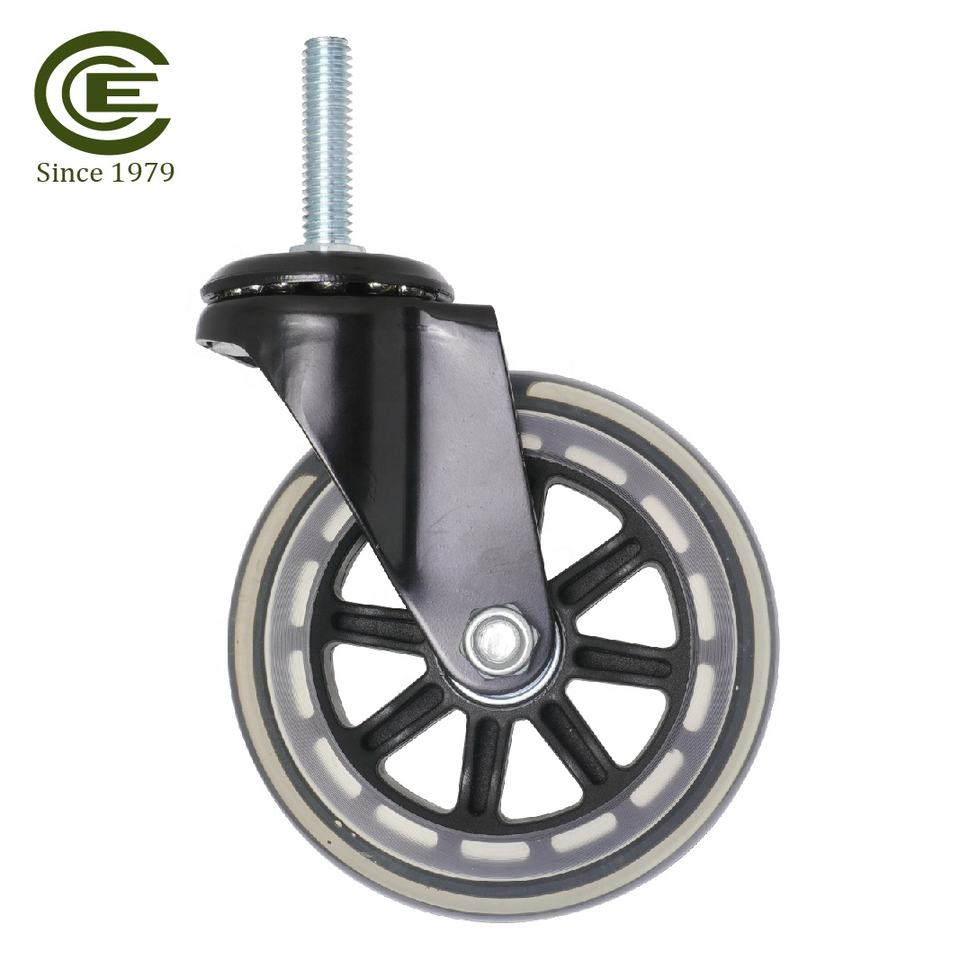 DIY PU Wheel 100mm 3/8 Inch Threaded Stem Furniture Table Casters