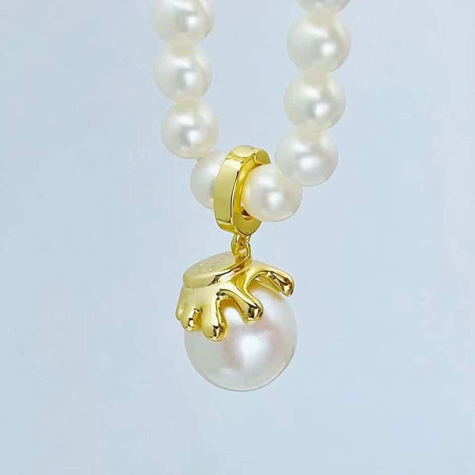 DIY S925 Silver Pendant with 10-13mm Round Beads Empty Holder Concealer Necklace Accessory Simple Style 31077