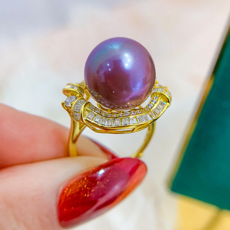 DIY S925 Silver Ring Accessory Trendy 9-10mm Round Pearl Inlay Empty Holder for Concealer Ornament 10041