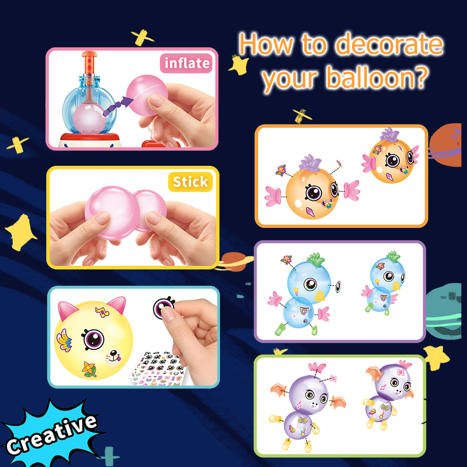 DIY Space Magic Balloon Kit Sticker Decorated Balloons Toy for Kids DIY Sticky Balloons Rocket Air Pump with Balloon Monster