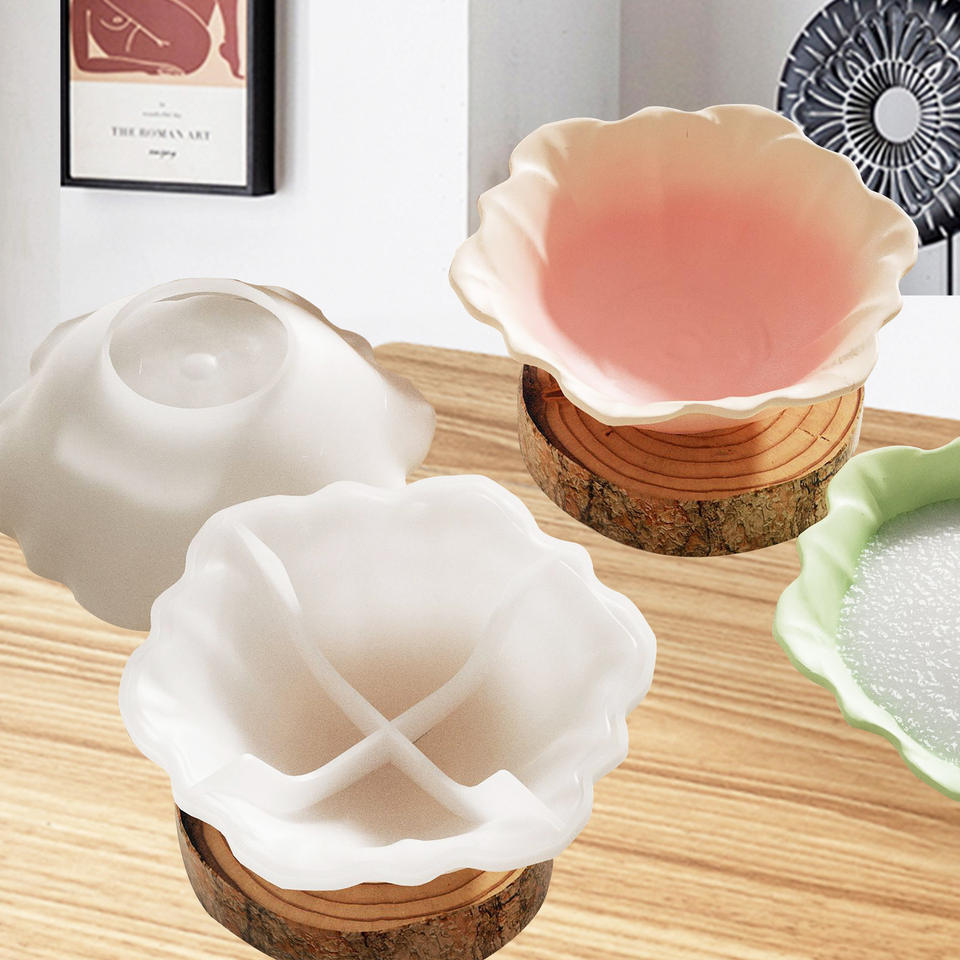 DIY crystal resin irregular lotus leaf lace storage bowl scented wax candle cup silicone mold