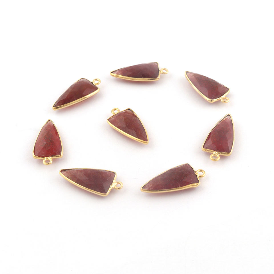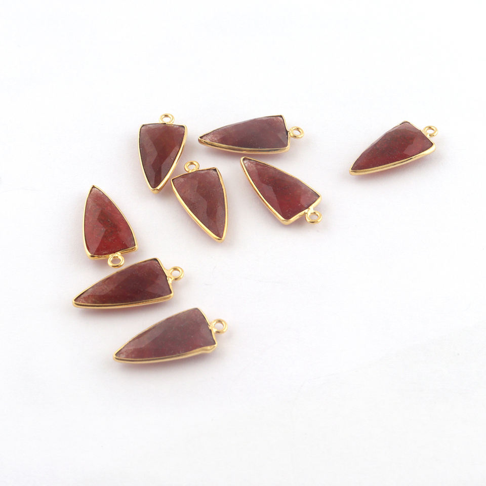 DIY jewelry components long trillion shape brown jade making supply connector brass 18k gold plated pendant earring connector