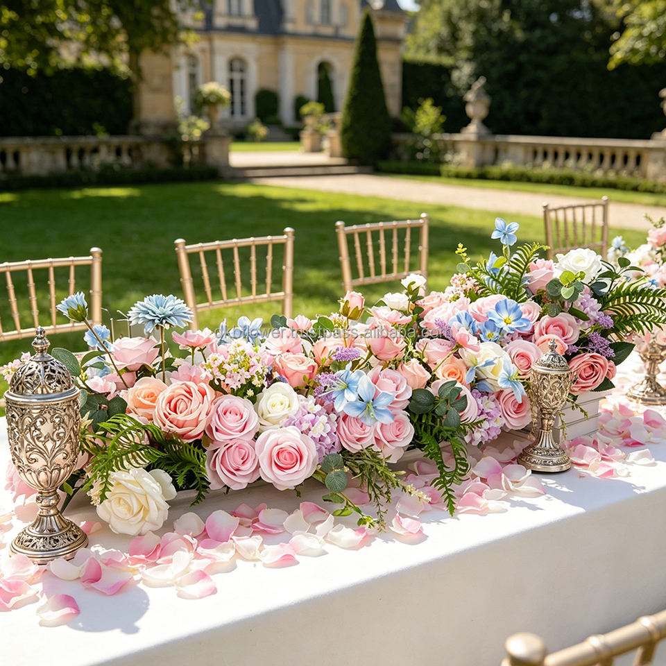 DKB Artificial Flower Factory Customized Flower Runner Wedding Aisle Flower Artificial White Flower Runner