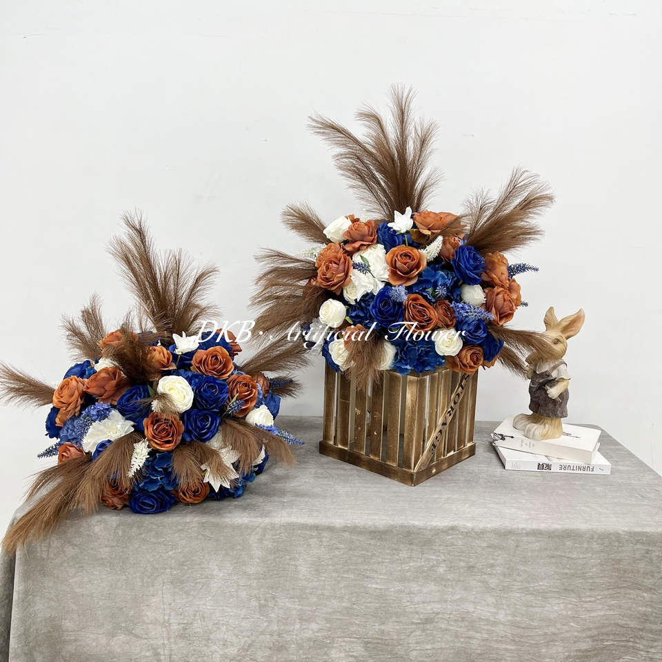 DKB Latest Design Navy Blue Rose Pampas Wedding Table Home Decoration Centerpieces