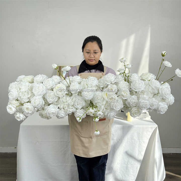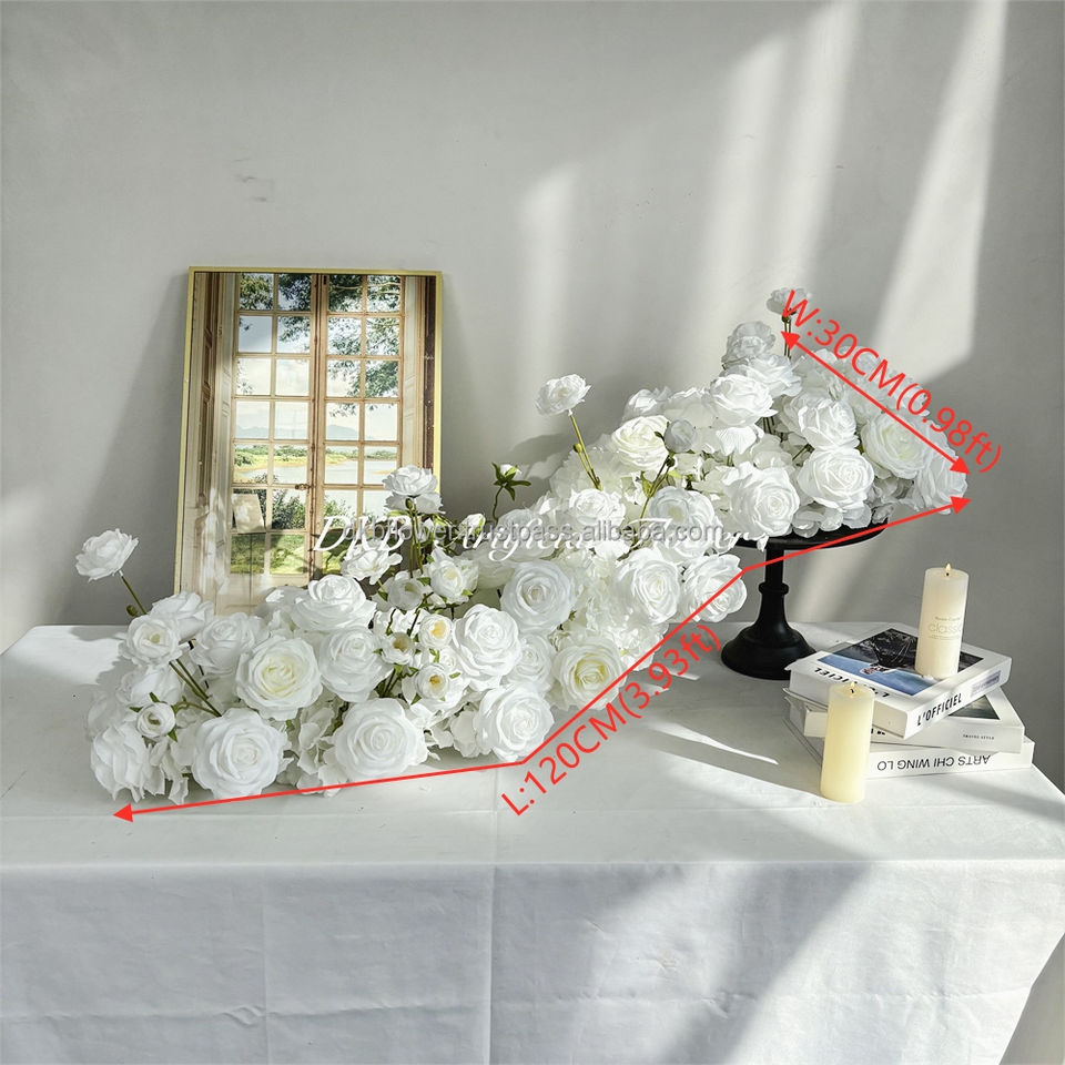 DKB Wholesale Handmade Multi-Colour Wedding Decor Silk Artificial Rose Flowers Table Runner Table Centerpiece Aisle Runner