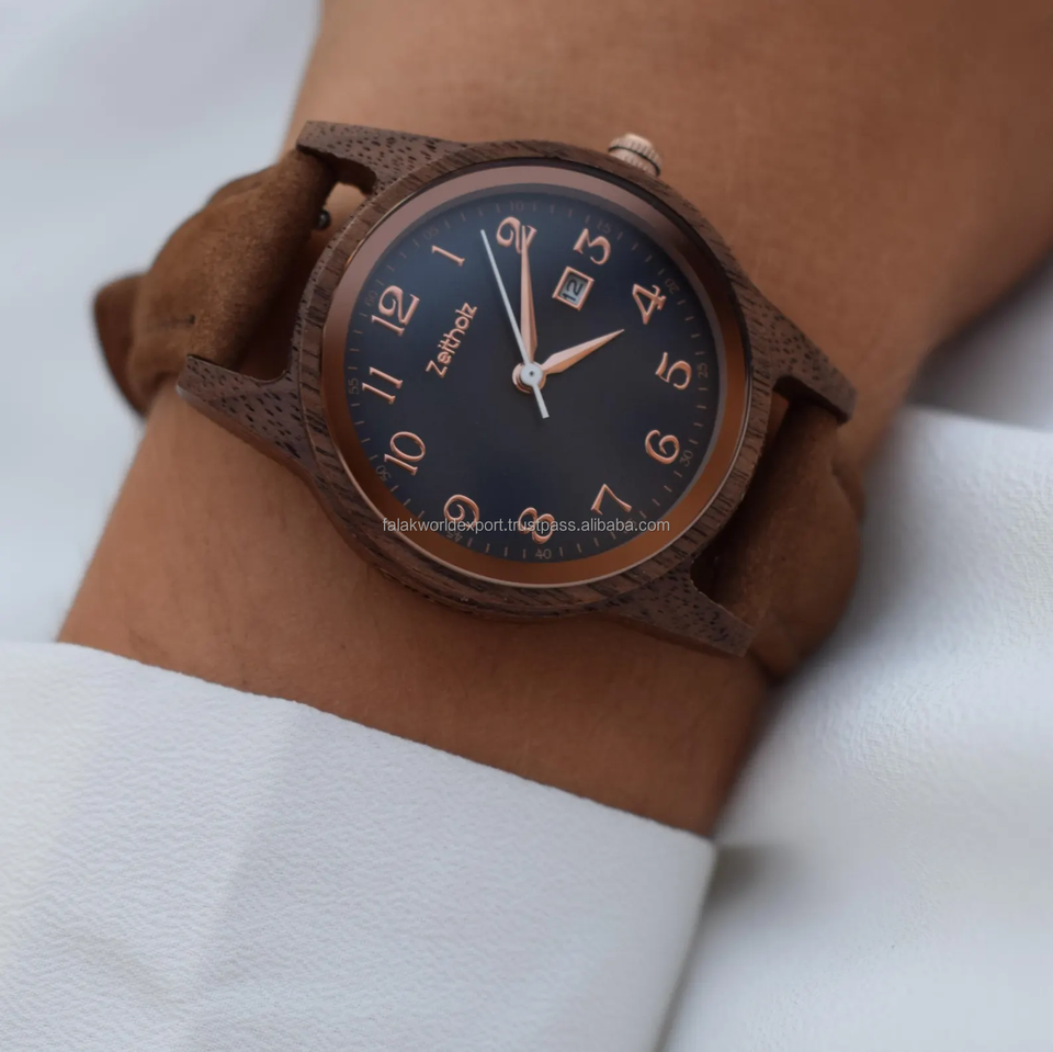 Bobobird Top Brand Leather Strap Bamboo Watch Men Analog Quartz Wooden Hand Watches with Custom Printed logo By FWE