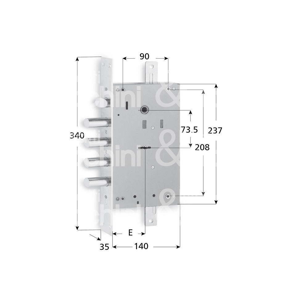 DOUBLE MAP LOCK art. 811 4 throws and latch Pair of sliders for rod attachment Zinc plated 5 keys 390090 1 key for