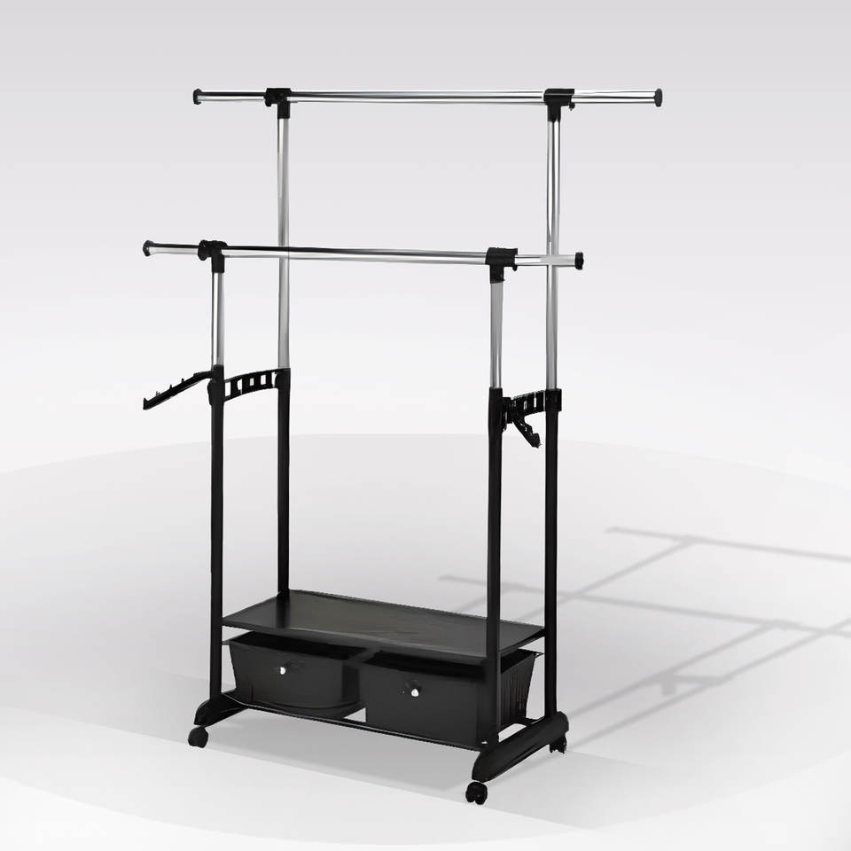 DOUBLE ROD COAT HANGER H. 168 CHROME AND BLACK