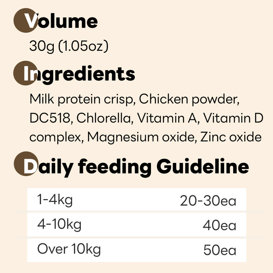Vitamin D3, Chicken Pet, DC518, Chlorella, Vitamin A, Magnesium Oxide, Zinc OxideMaterial