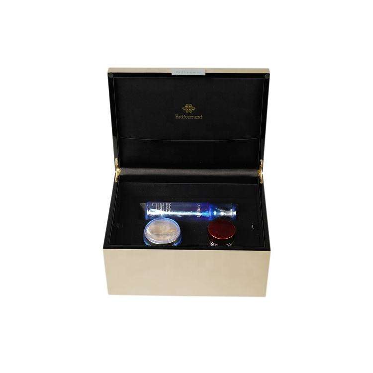 DS Customized Handmade New Design Black Gold Lacquer Rectangle MDF Perfume Cosmetics Wooden Gift Box Accept Custom
