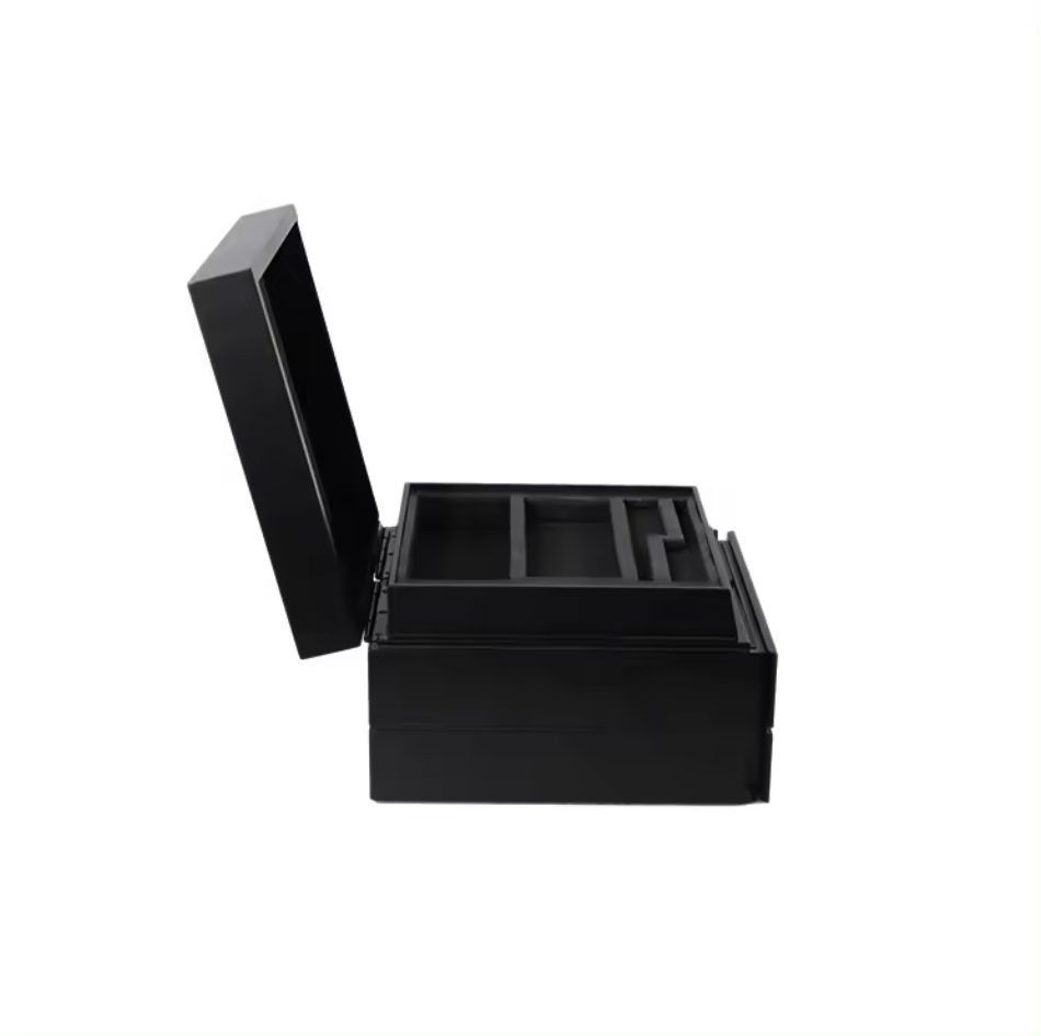 DS Handmade Multi-Layer Matte Black Gold Stamping Logo Rectangle MDF Wooden Storage Box with Drawer Customizable