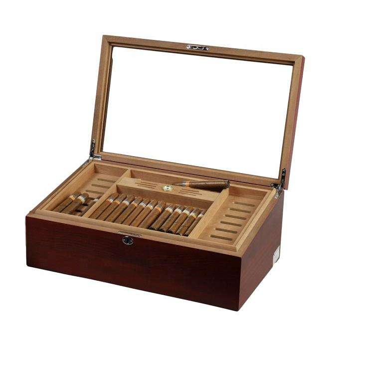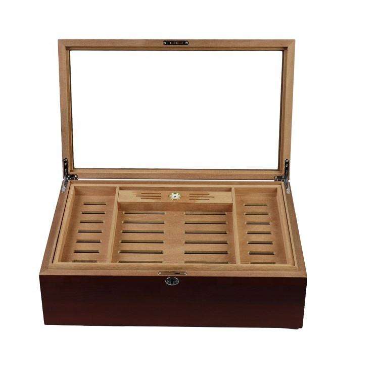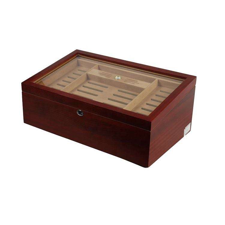 DS Luxury Lacquer Handcrafted Cedar Glass Top Portable Cabinet Humidor Cigar Box with Lock Wholesale