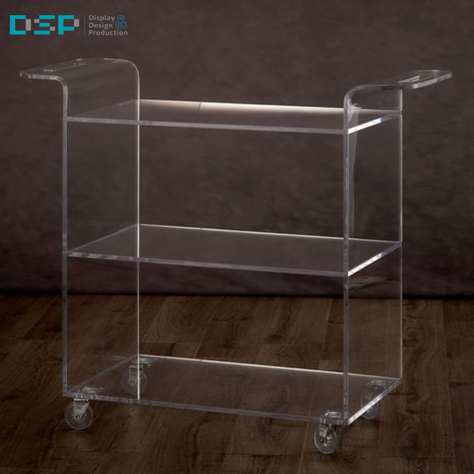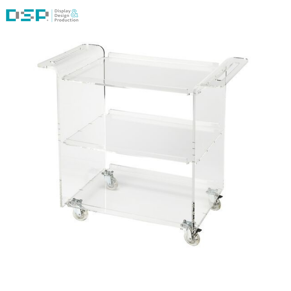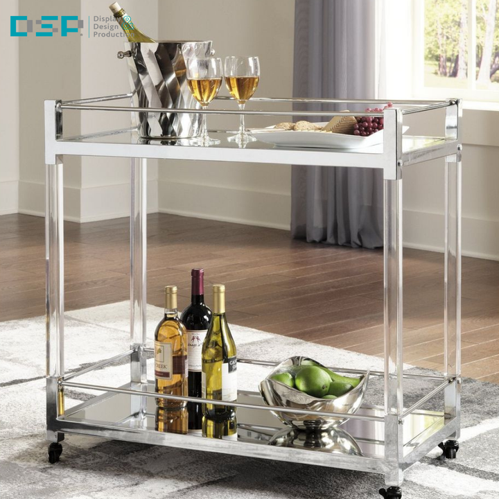 DSP Vietnam factory Commercial-Grade Premium Acrylic metal Bar Cart with Wheels Double-Layer Modern Trolley for Hotel Serving