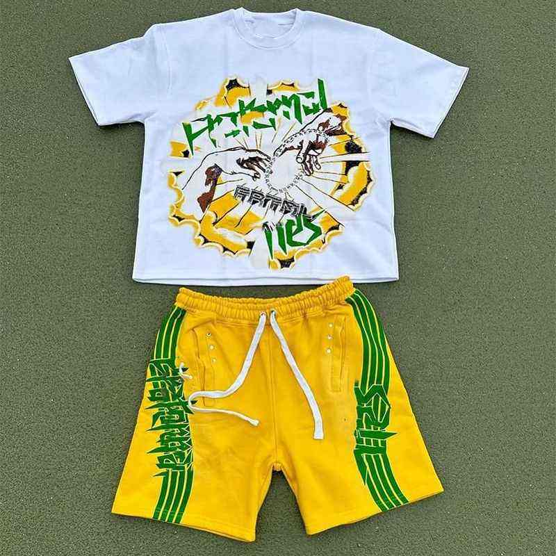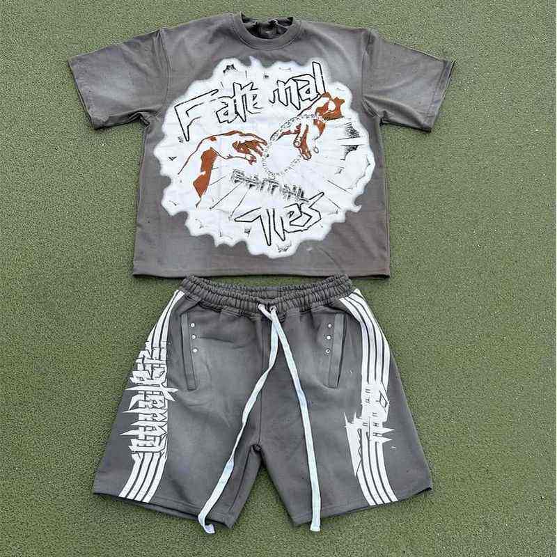 DTF DTG Rhinestone Print Men Two Piece Set T Shirt Shorts Custom Sublimation Summer Outfit Streetwear Oem Cotton