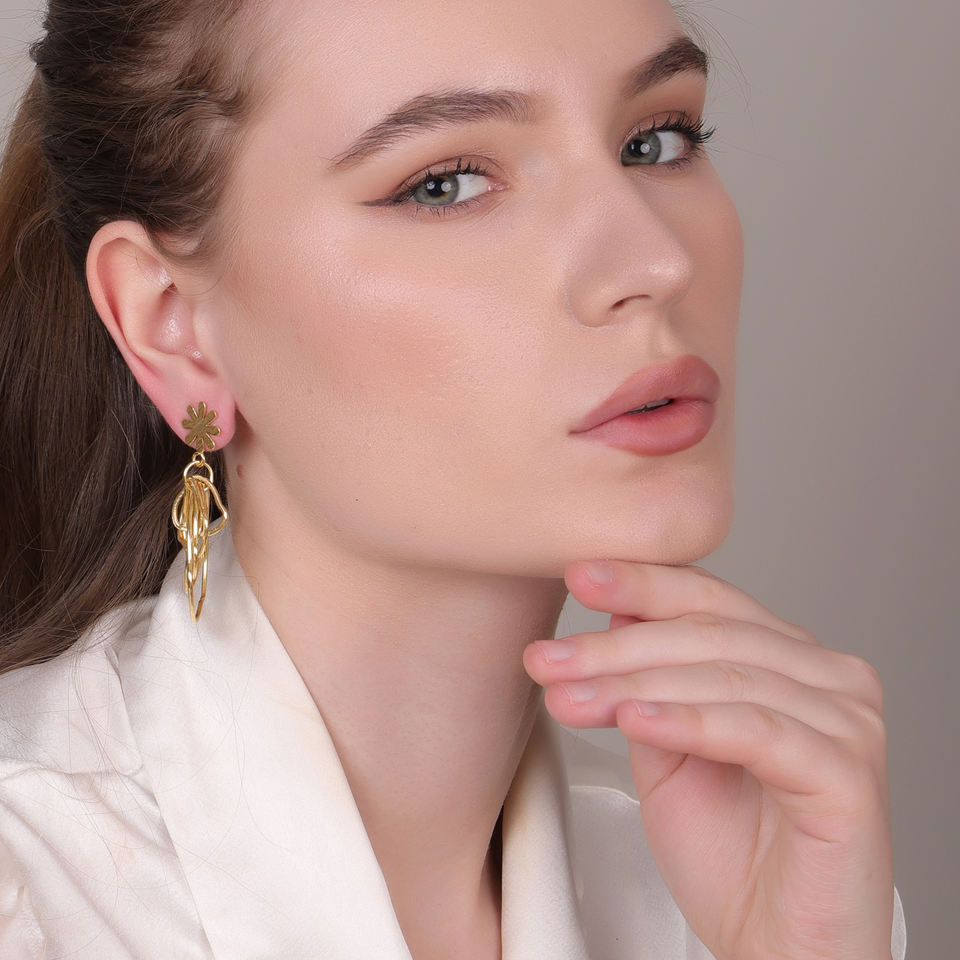 DUA Handcrafted 18K Gold Plated Brass Trendy Wedding Dangle Earrings for Women