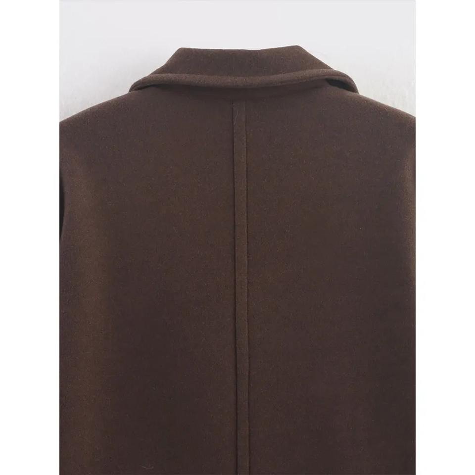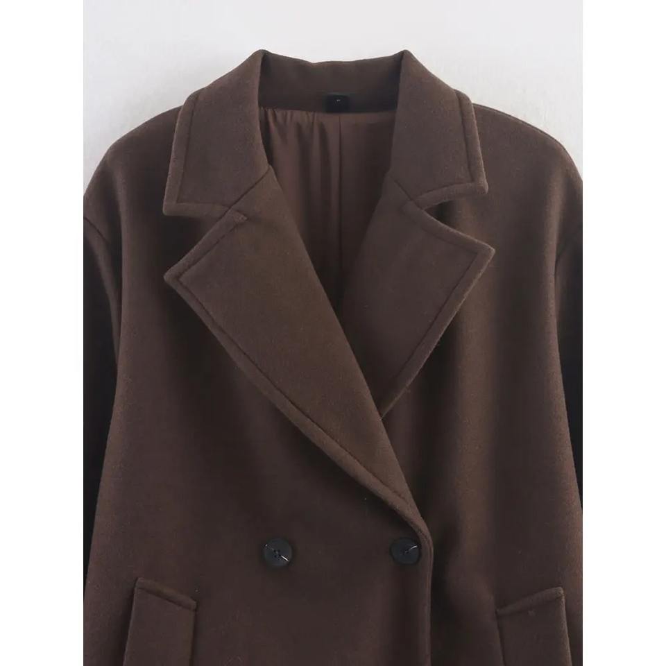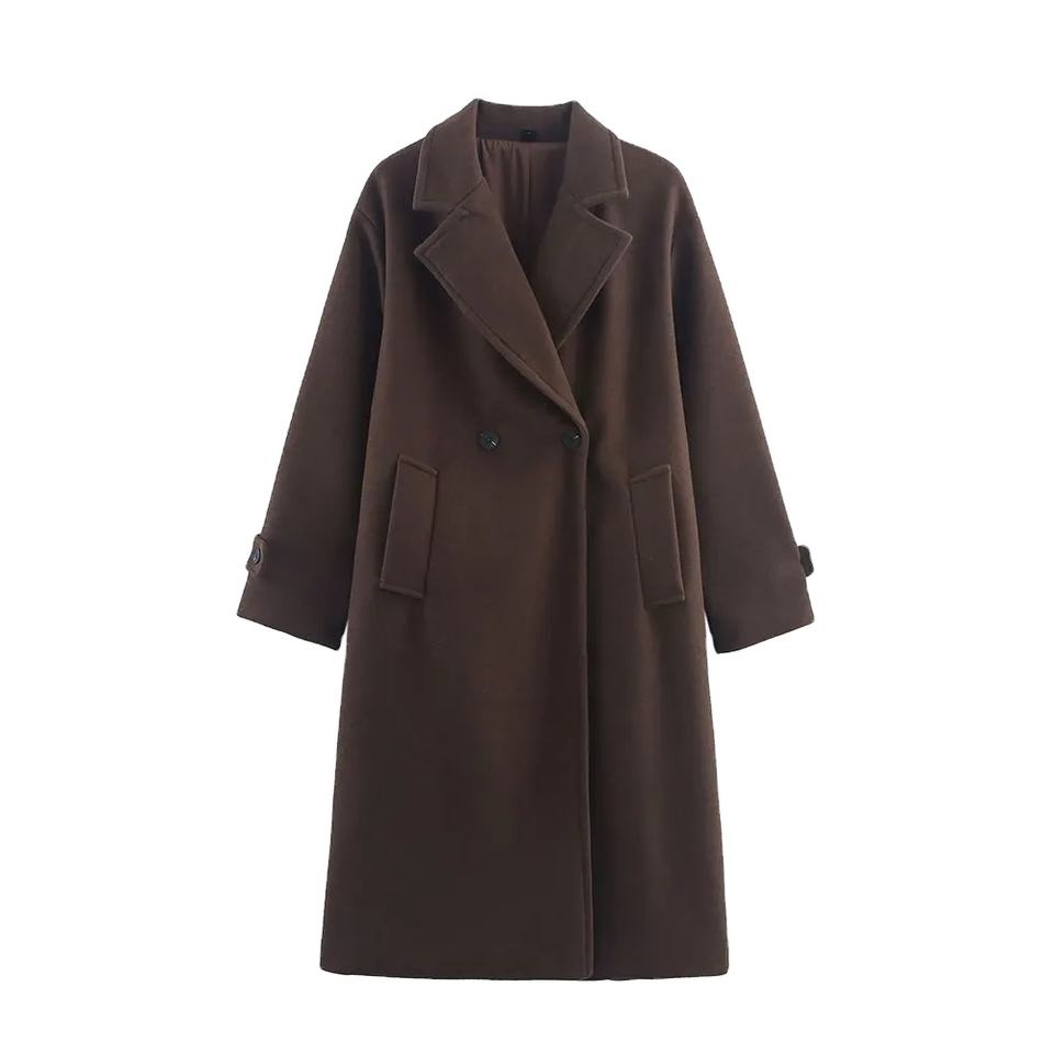 DUOPERI Autumn Winter Women's Brown Woolen Coat Elegant Chic Lady Outfits Warm Notch Neck Long Sleeves Rabbit Fashionable