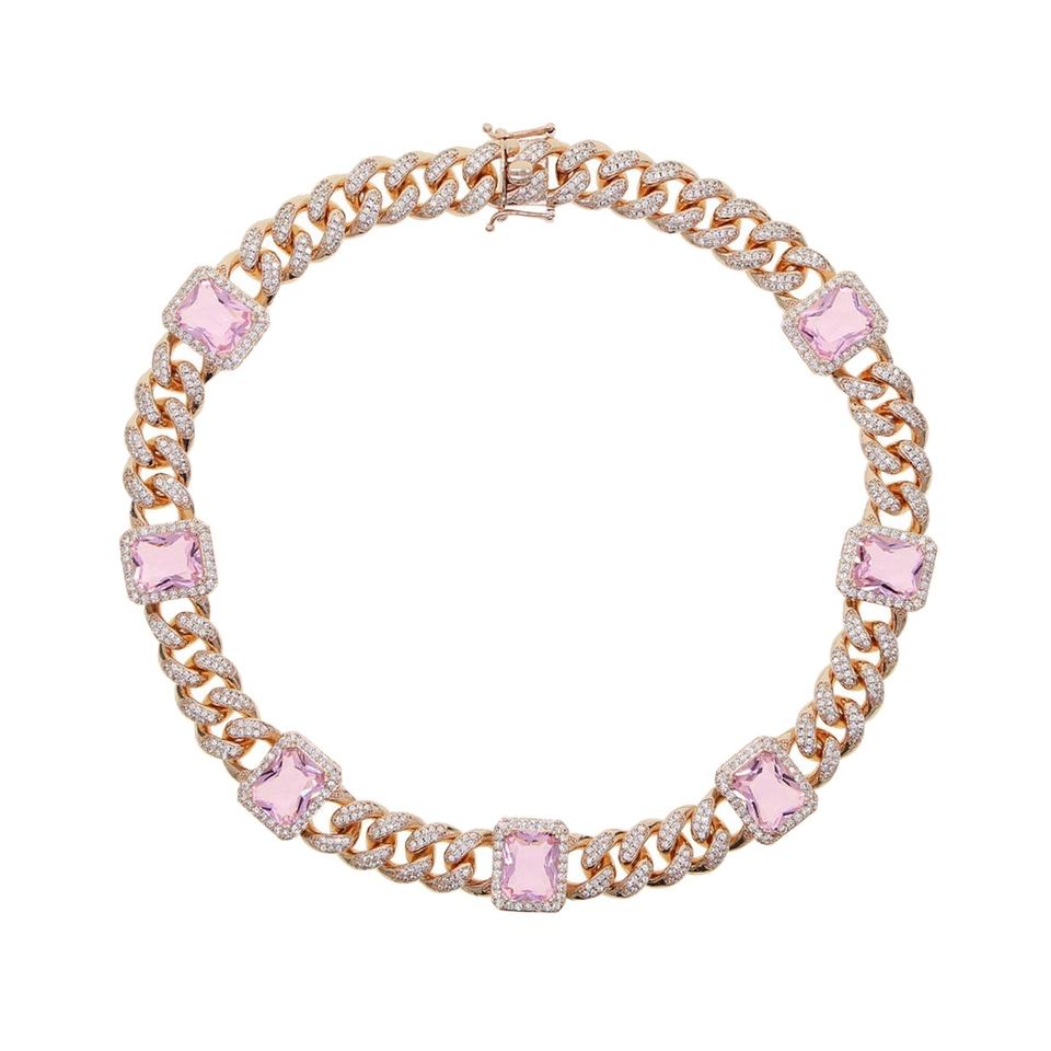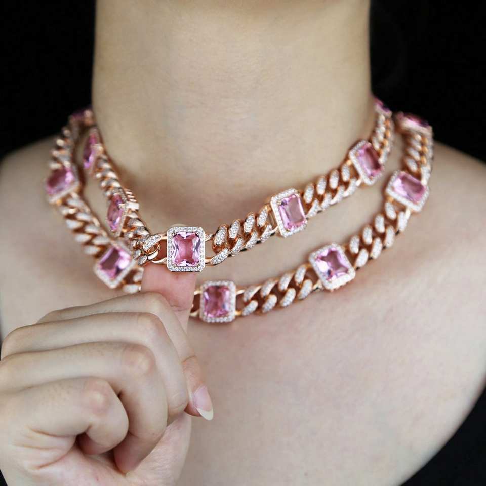 DUYIZHAO Wholesale Hip Hop Jewelry 12mm Iced Out Miami Cuban Link Chain Pink Necklace for Women Chunky Choker