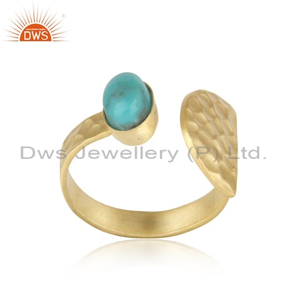 DWS Jewellery Hammered Yellow Silver Ring Arizona Turquoise 925 Sterling Silver Jewellery Natural Gemstone Manufacture Supplier