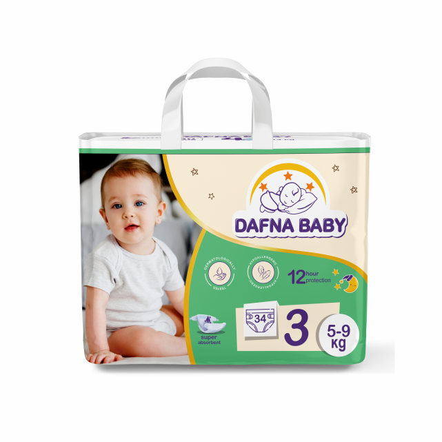Dafna Baby Diapers Comfortable Fit Size NB-XXL Disposable Cotton Nappies with Tape Plain Style Pads Wholesale Pack of 34 in Bag