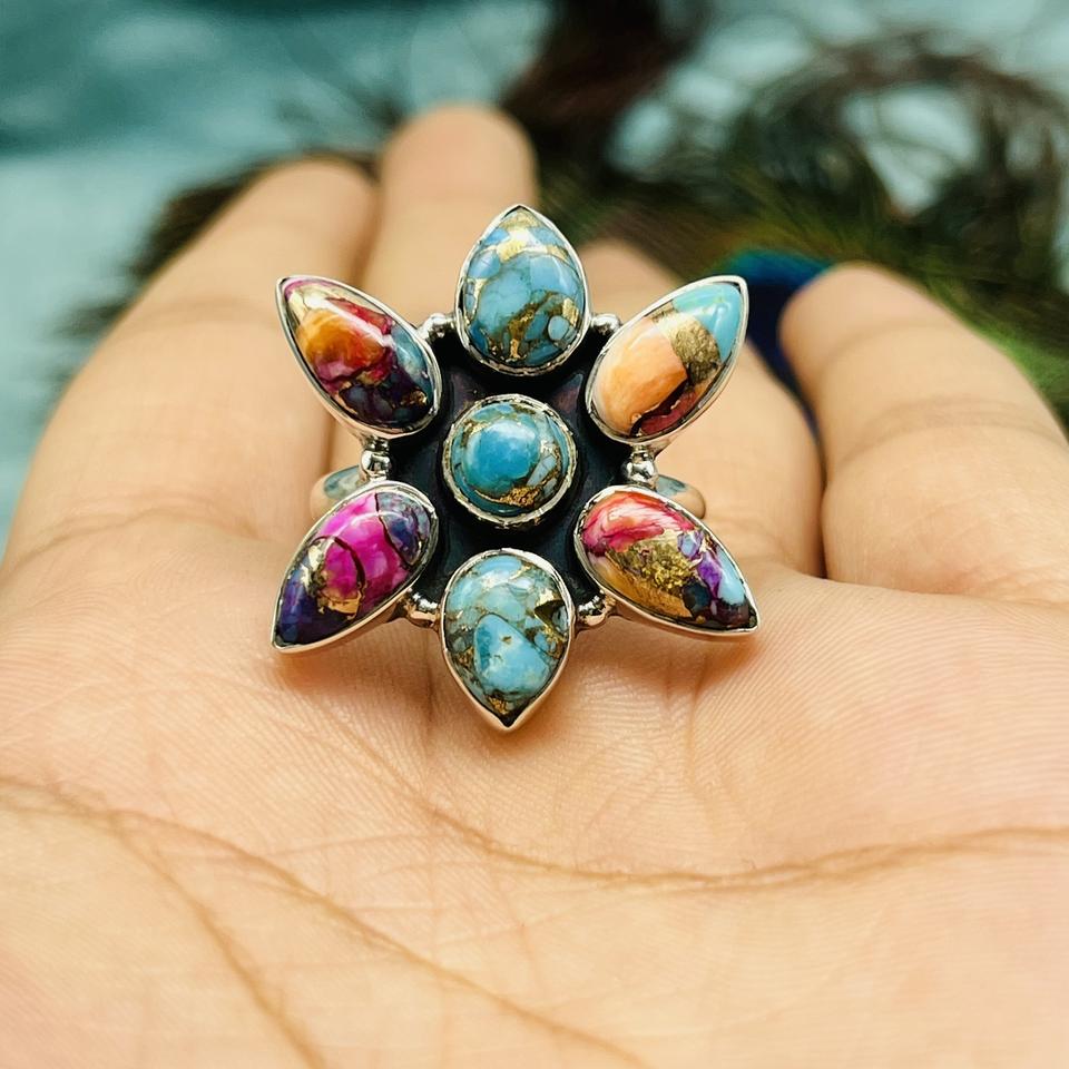 Dahlia Turquoise Bezel Setting Sterling Silver Ring Handmade Fashion Designer Bohemia Wedding Party Gift Idea