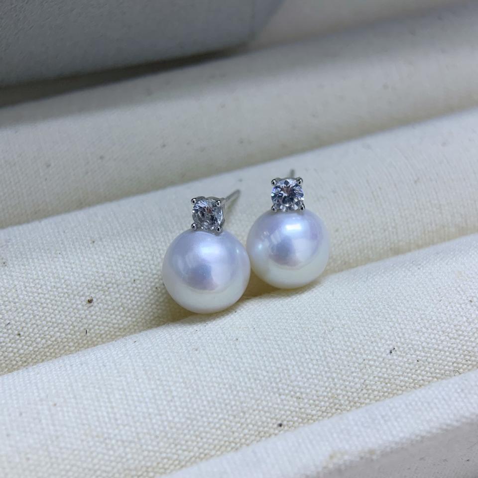 Daifei Style Classic Simple Round Earrings Zhuji Natural 9-10mm Freshwater Pearls 925 Silver with Bright Light Classic Simple