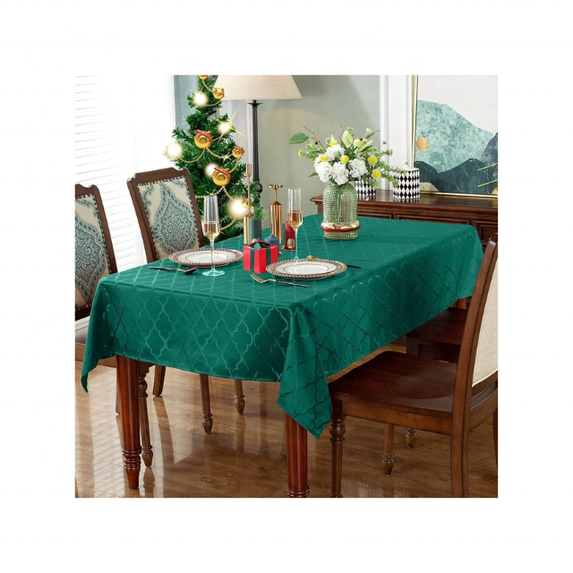 Daily Dining Refresh 100% Cotton Emerald Green Embroidered Minimal Table Cloth 160 GSM 6 Seater India ISO Private Label Ready