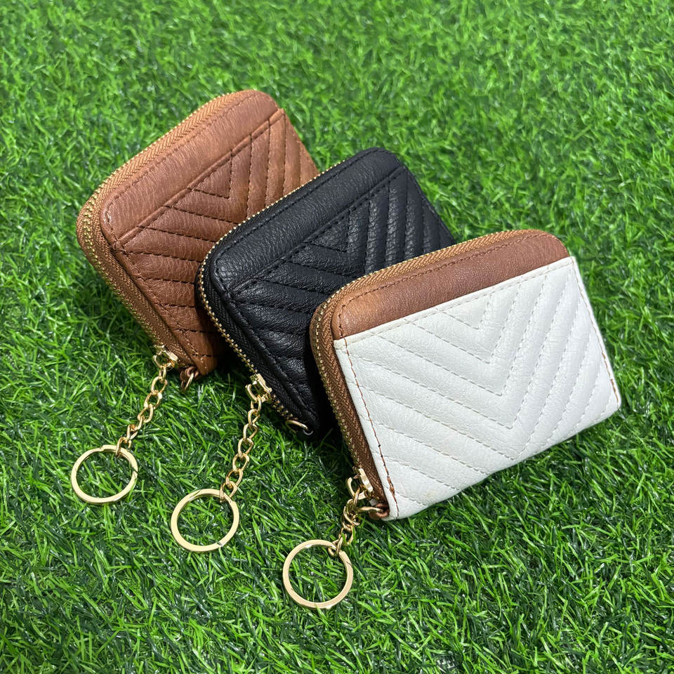 Daily Portable PU Leather Women Mini Purse Wallet with Wristlet Zippered Around Multiple Slot Credit Card Holder